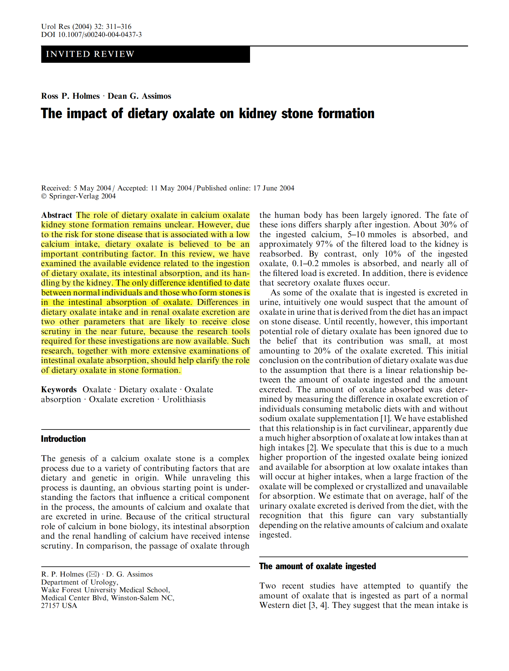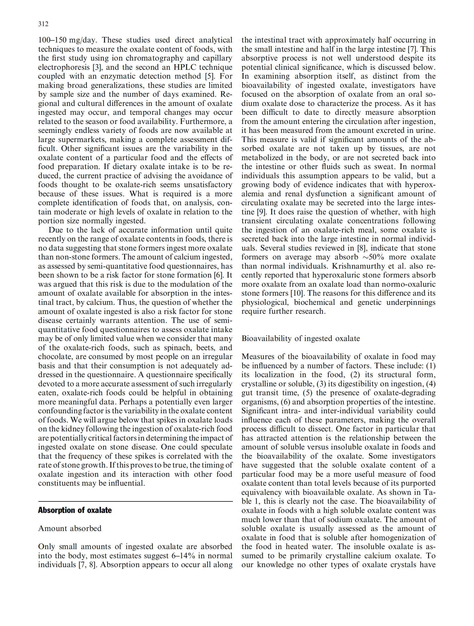 Susanne Voss. Intestinal Oxalate Absorption is Higher in Idiopathic Calcium Oxalate Stone Formers Than in Healthy Controls