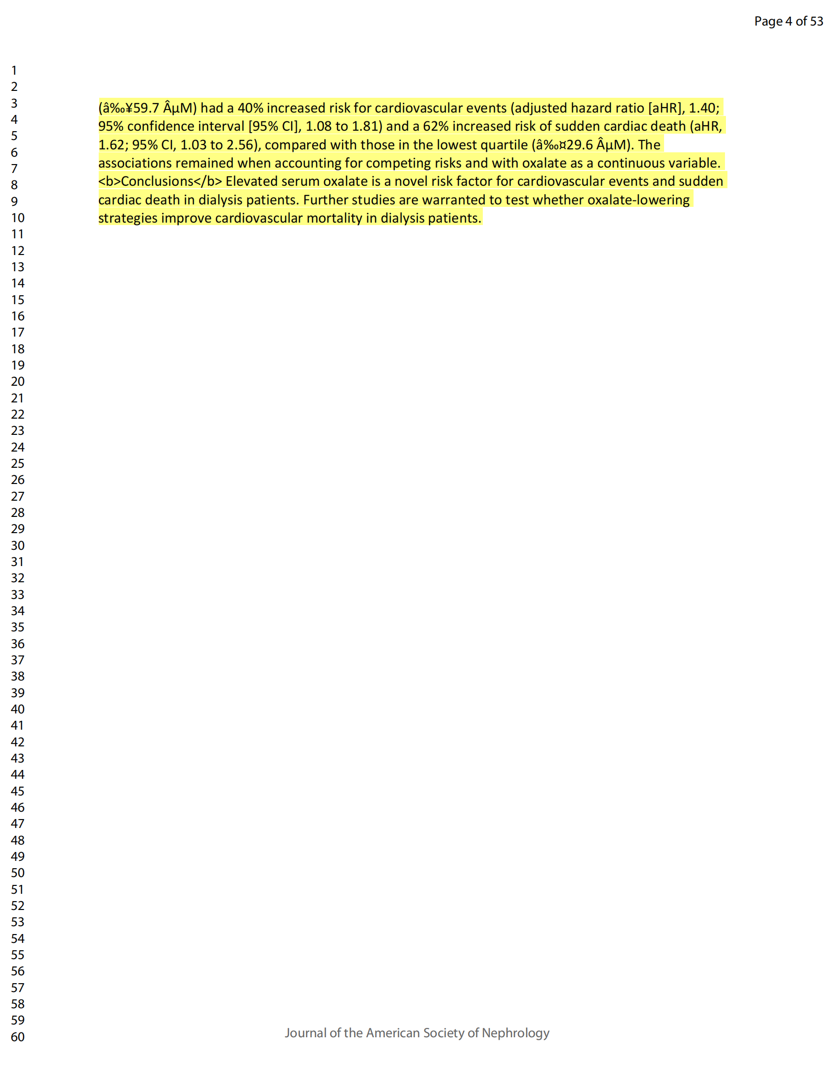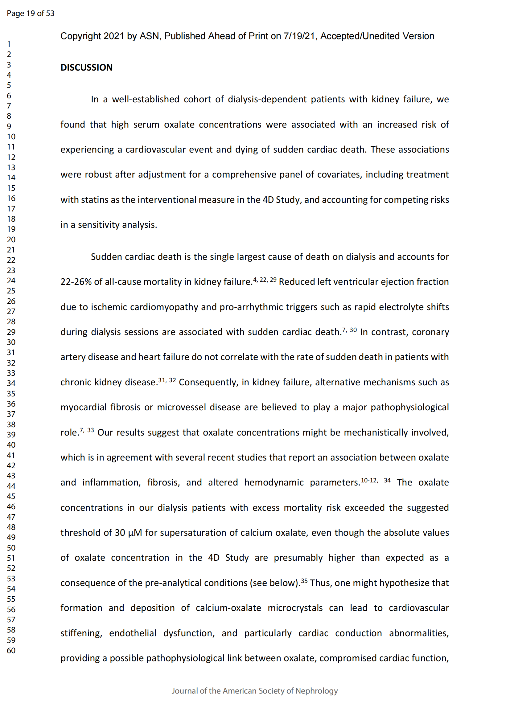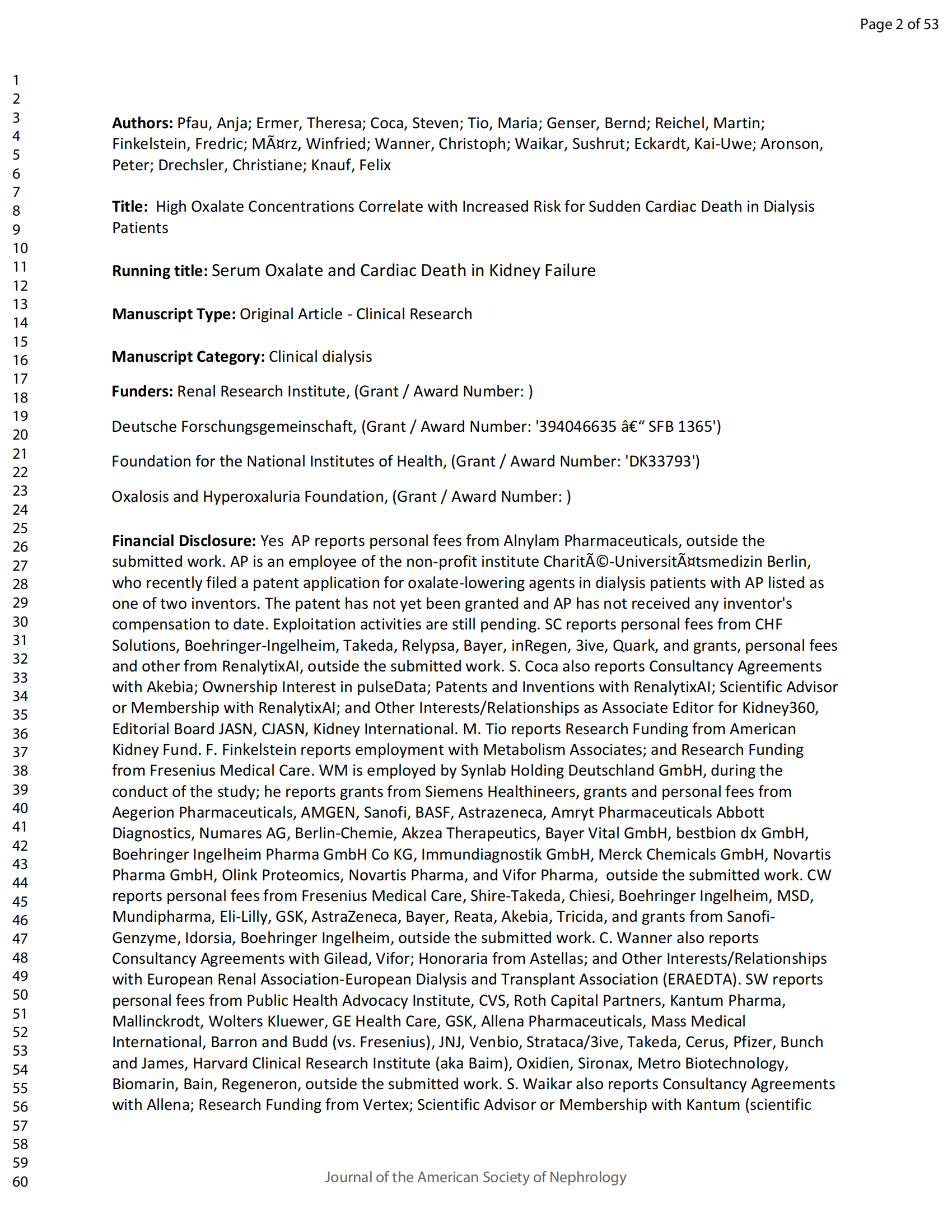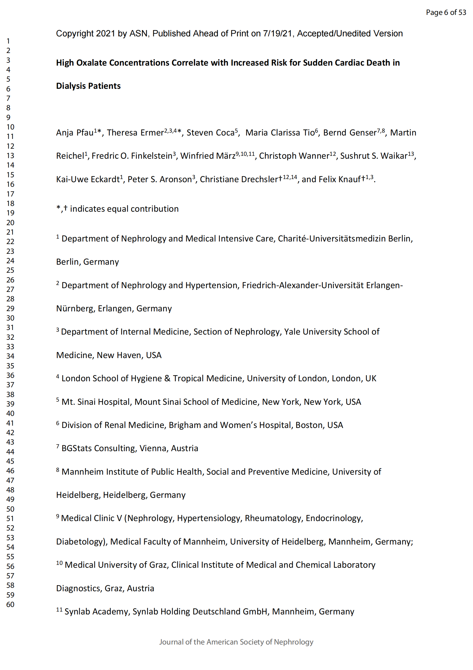 Pfau, Anja. High Oxalate Concentrations Correlate with Increased Risk for Sudden Cardiac Death in Dialysis