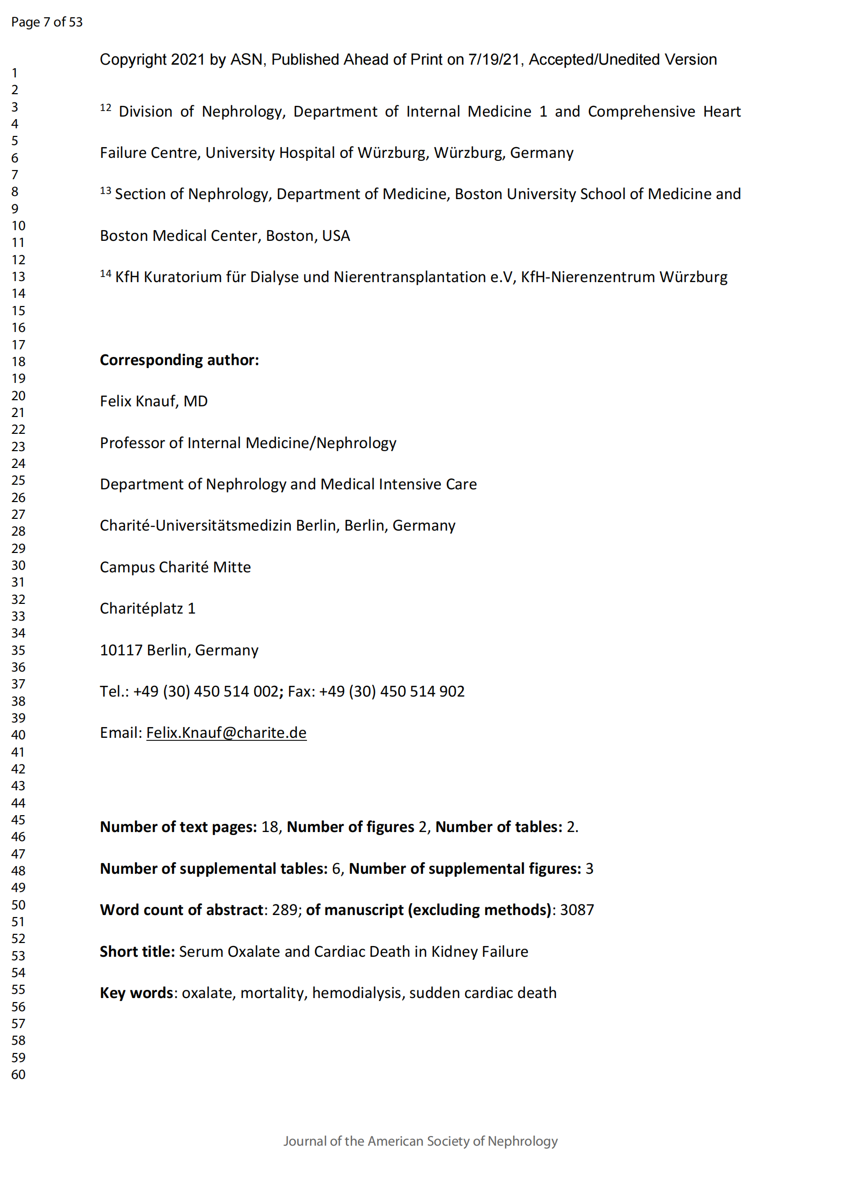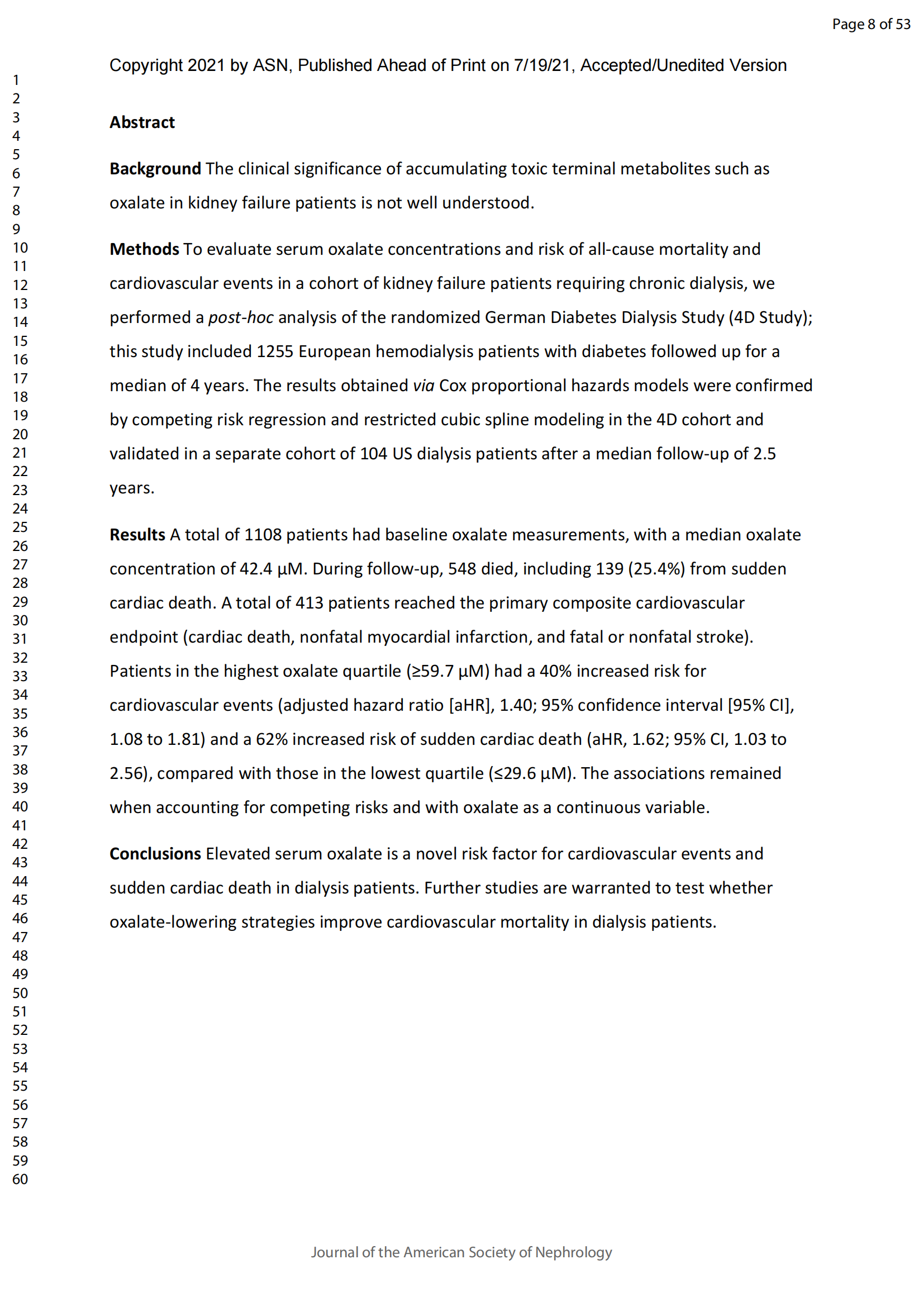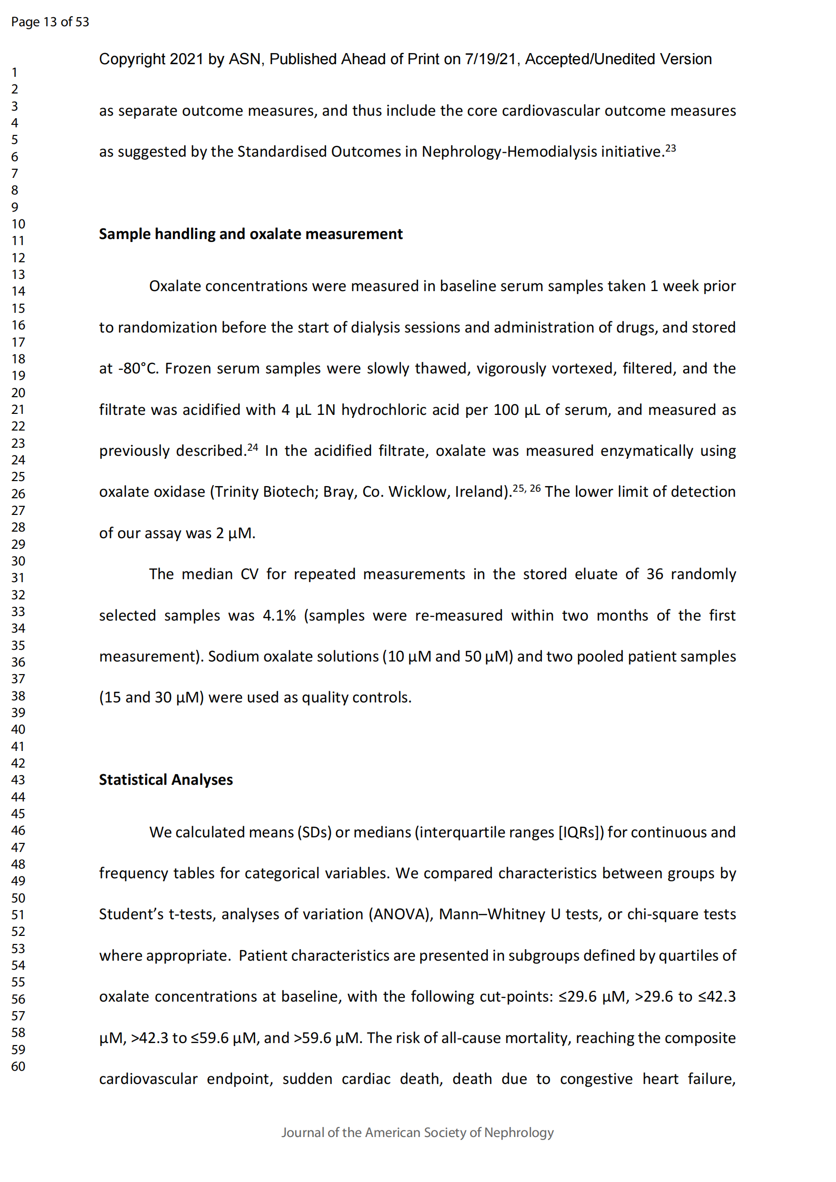 Pfau, Anja. High Oxalate Concentrations Correlate with Increased Risk for Sudden Cardiac Death in Dialysis