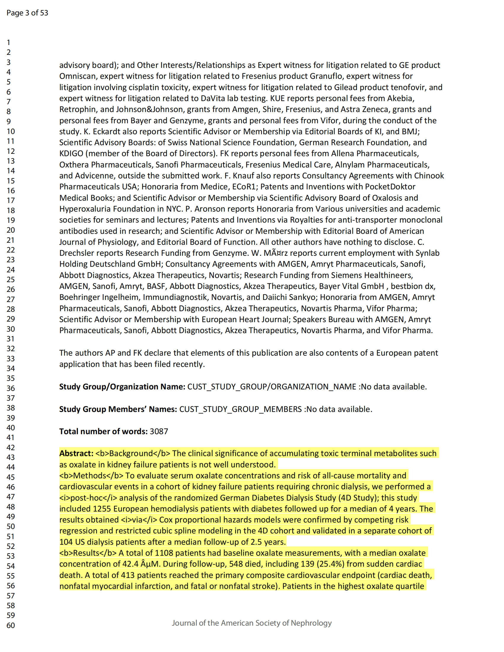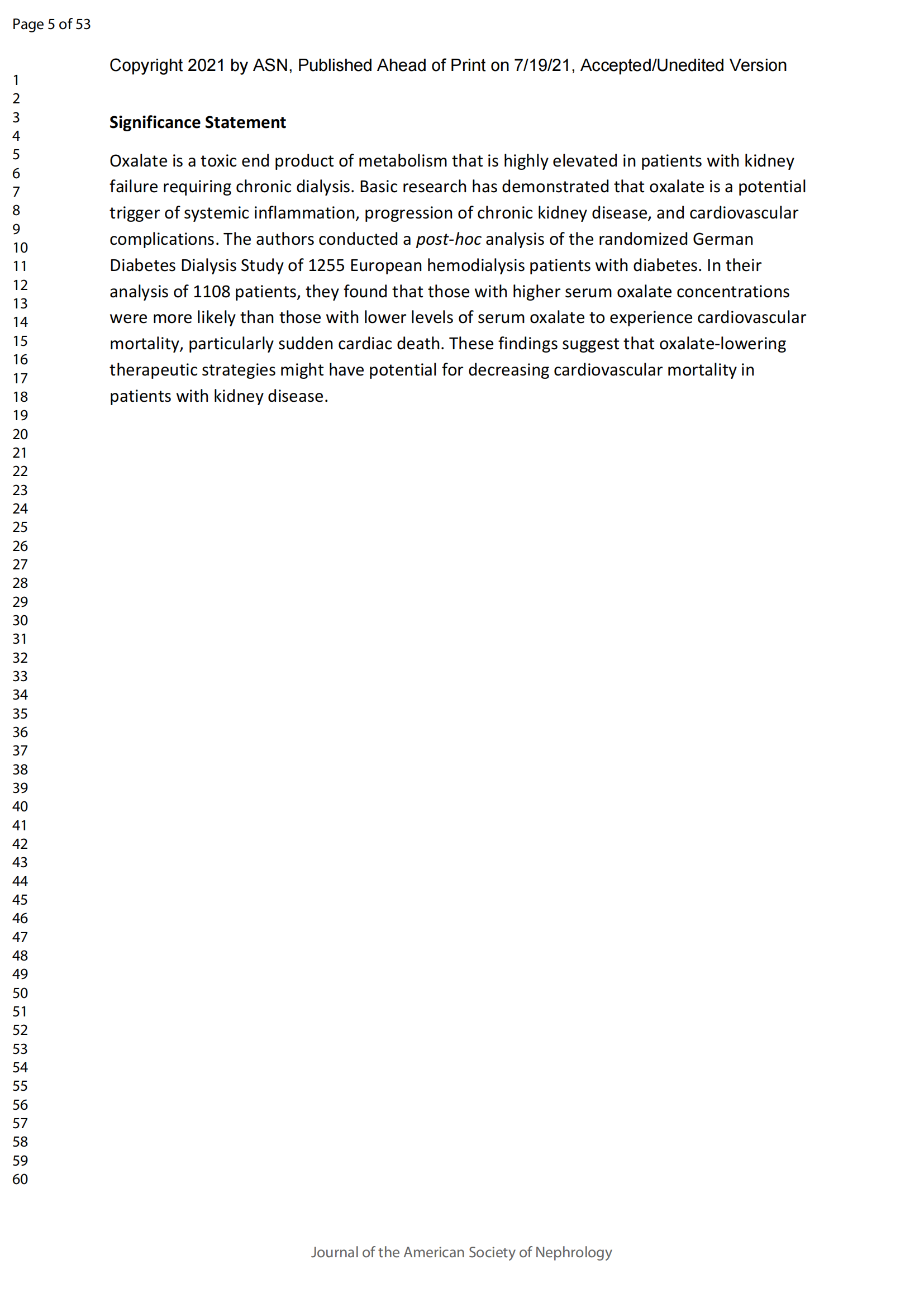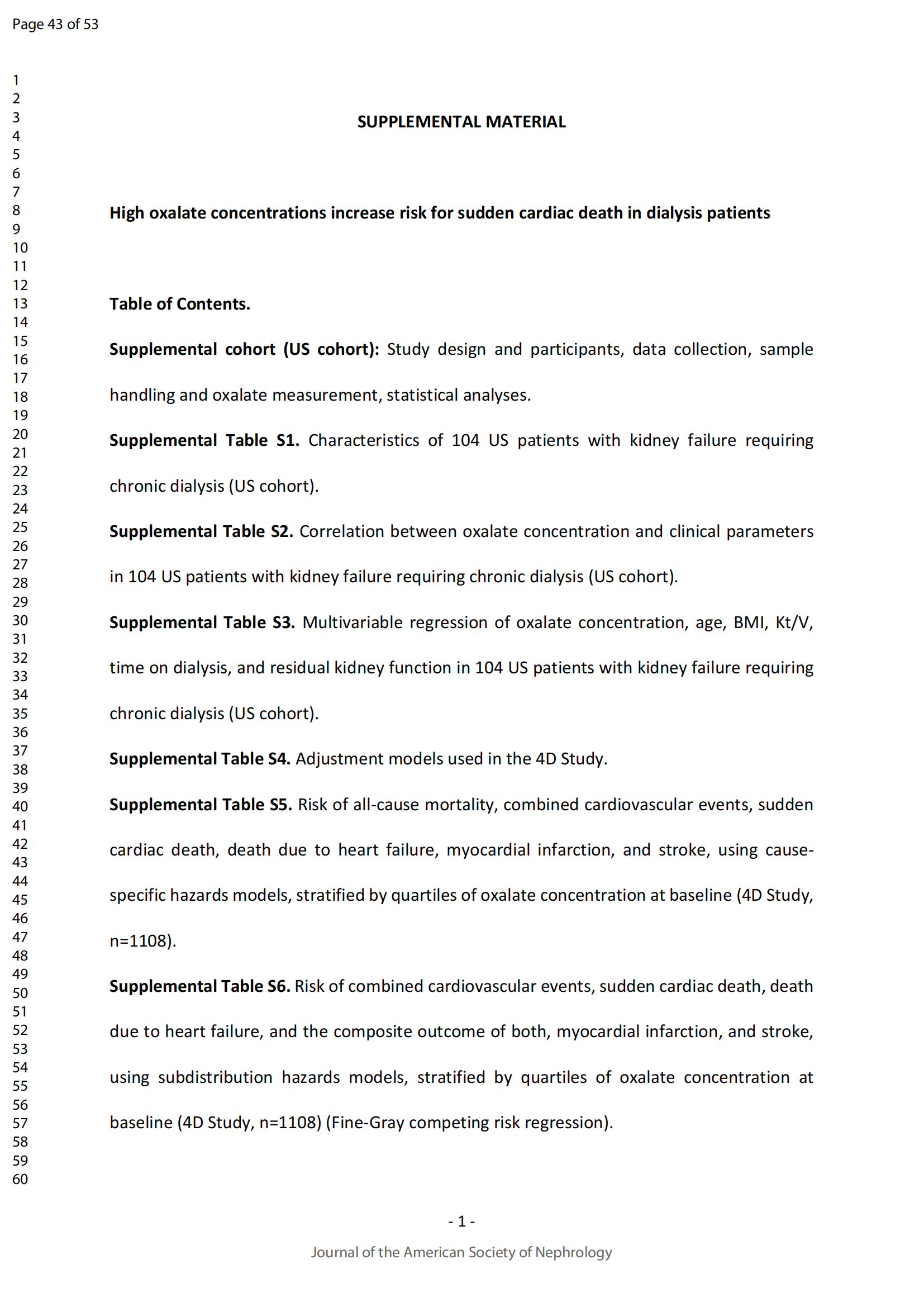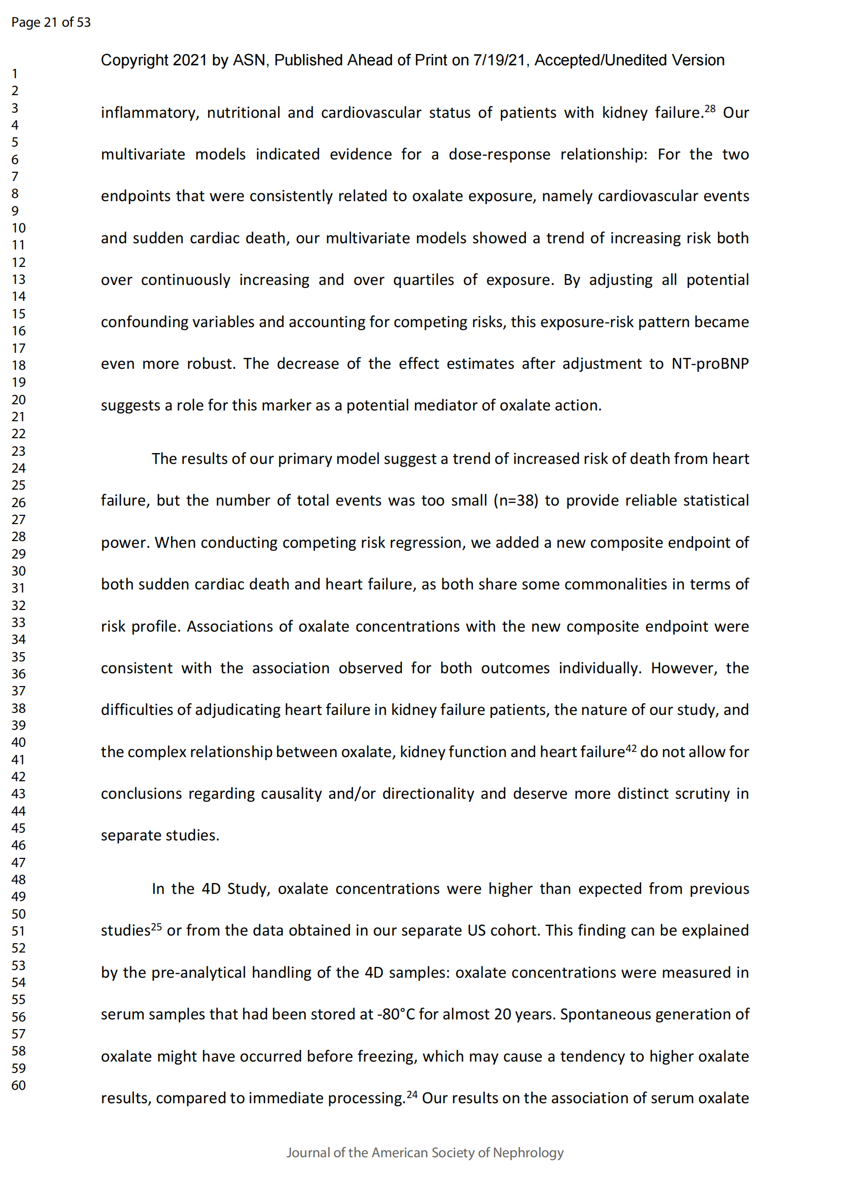 Pfau, Anja. High Oxalate Concentrations Correlate with Increased Risk for Sudden Cardiac Death in Dialysis