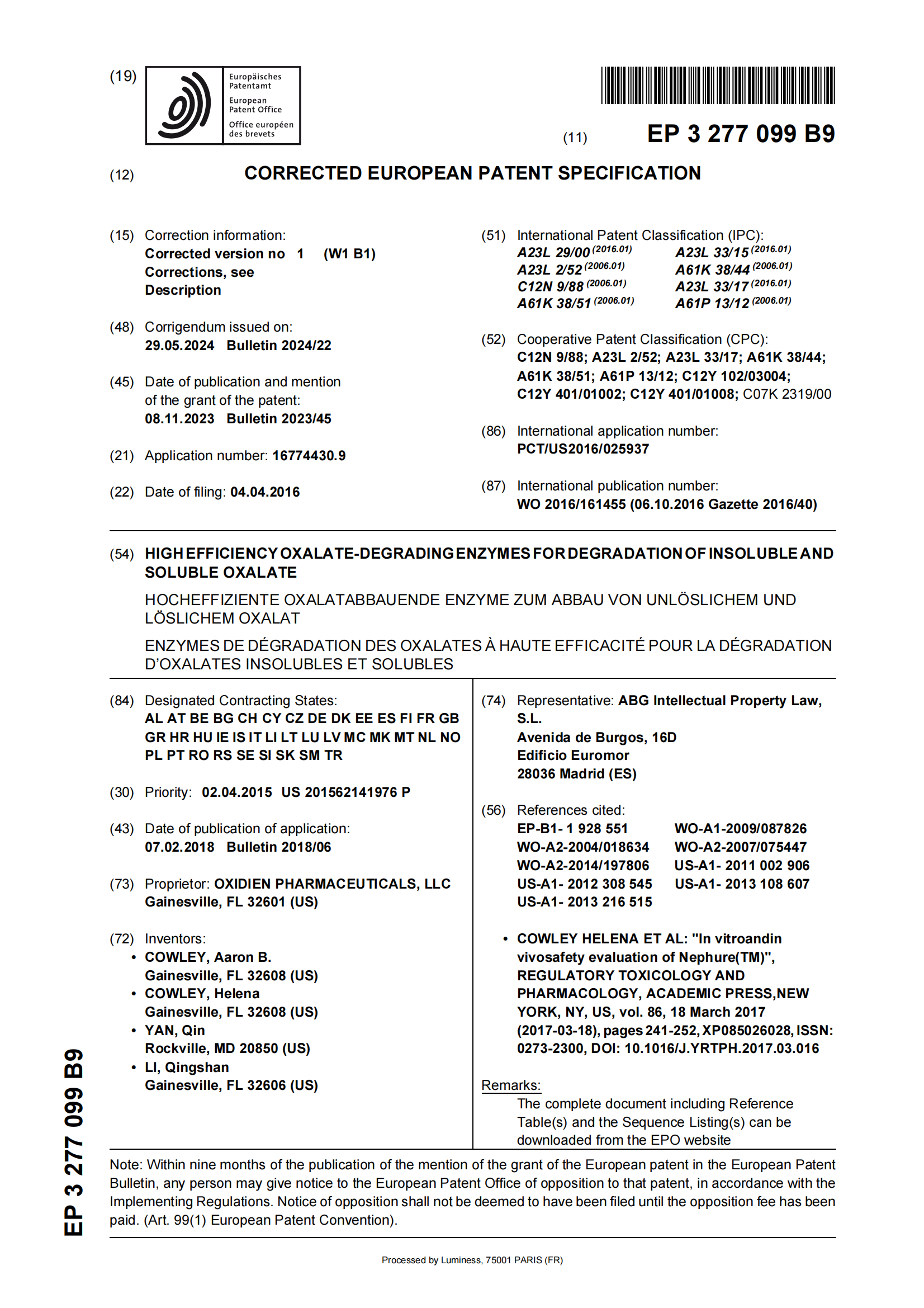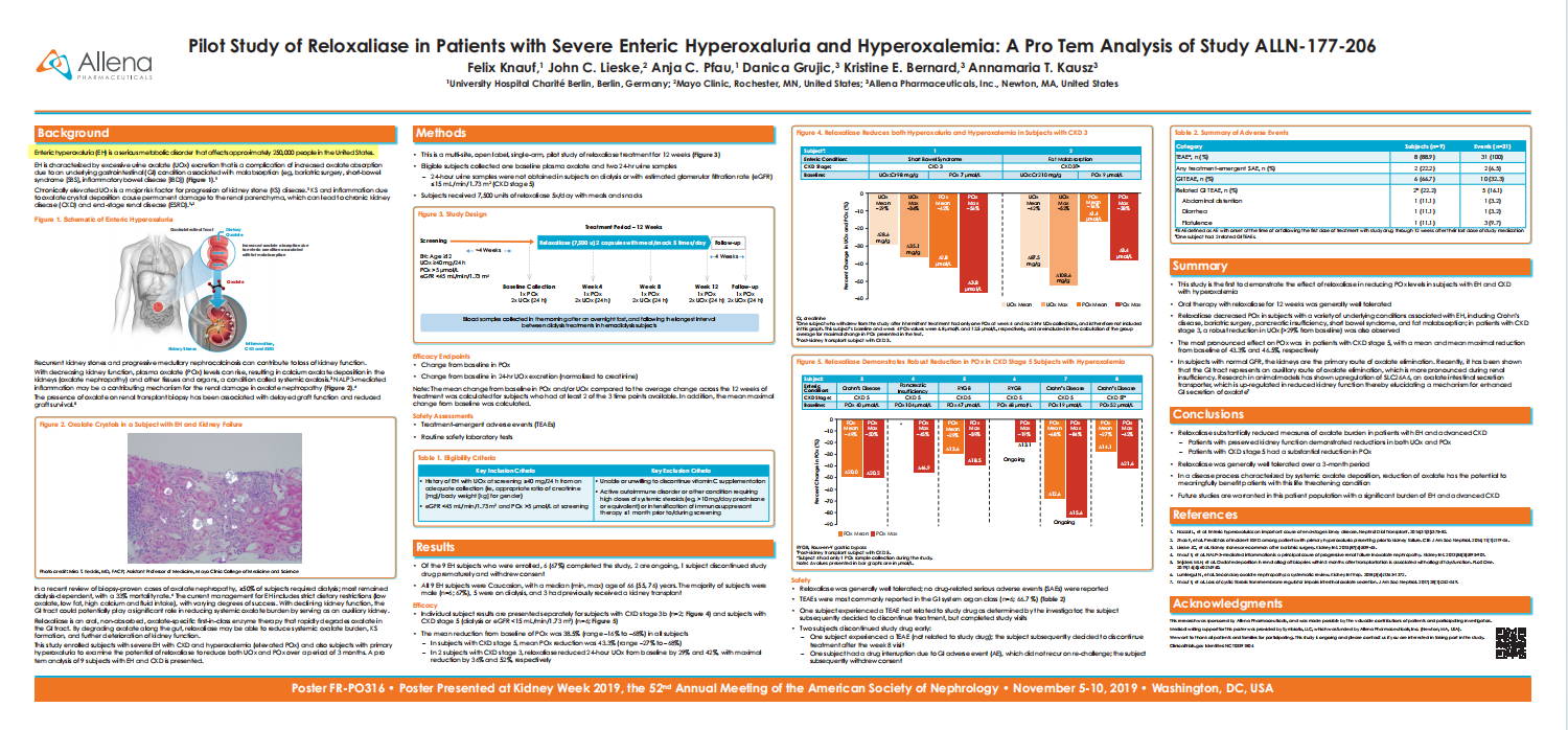 Anja C. Pfau. Pilot Study of Reloxaliase in Patients with Severe Enteric Hyperoxaluria and Hyperoxalemia